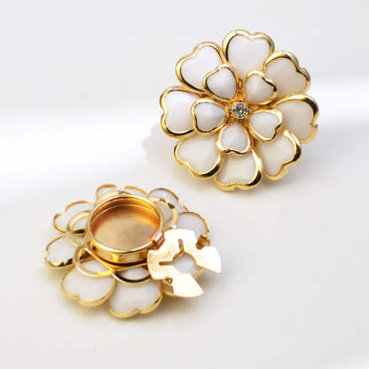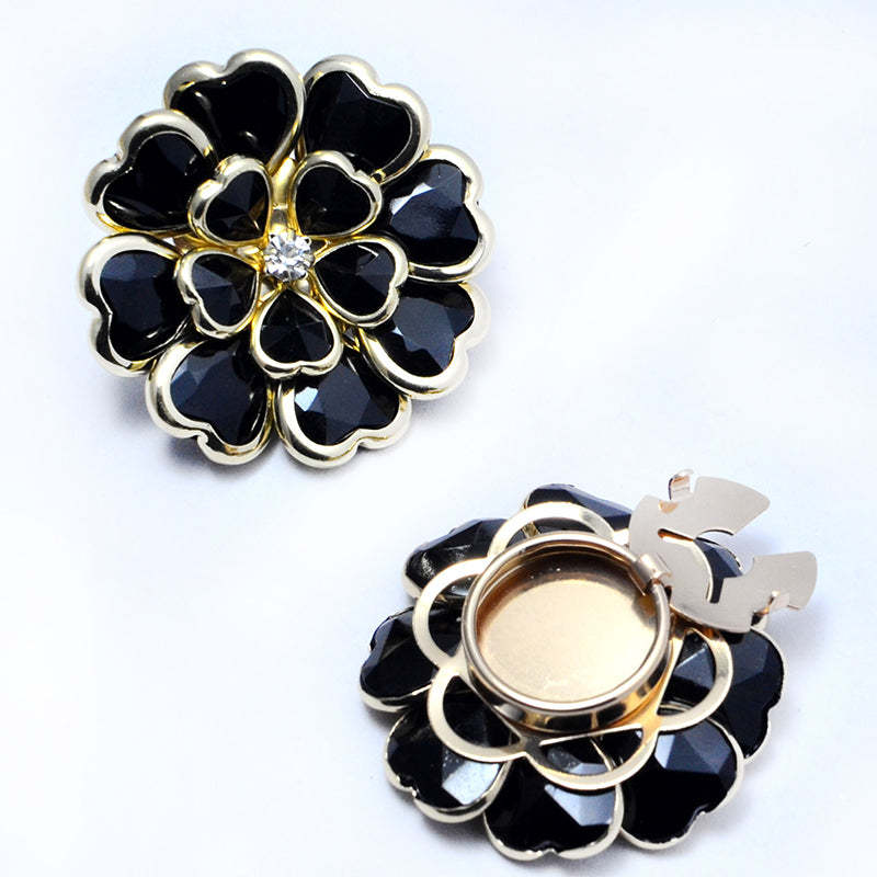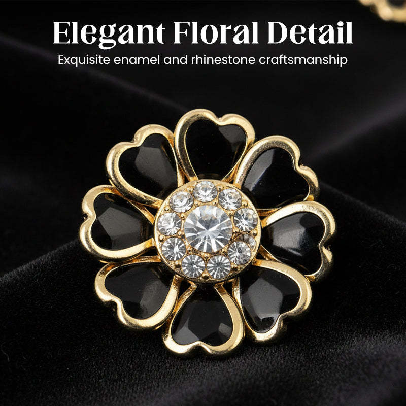 ELEGANT FLORAL CRAFTSMANSHIP: Featuring a delicate floral motif with a glossy enamel finish and sparkling rhinestone accents. This exquisite detail brings a refined and feminine touch, adding a layer of luxury to your everyday attire.