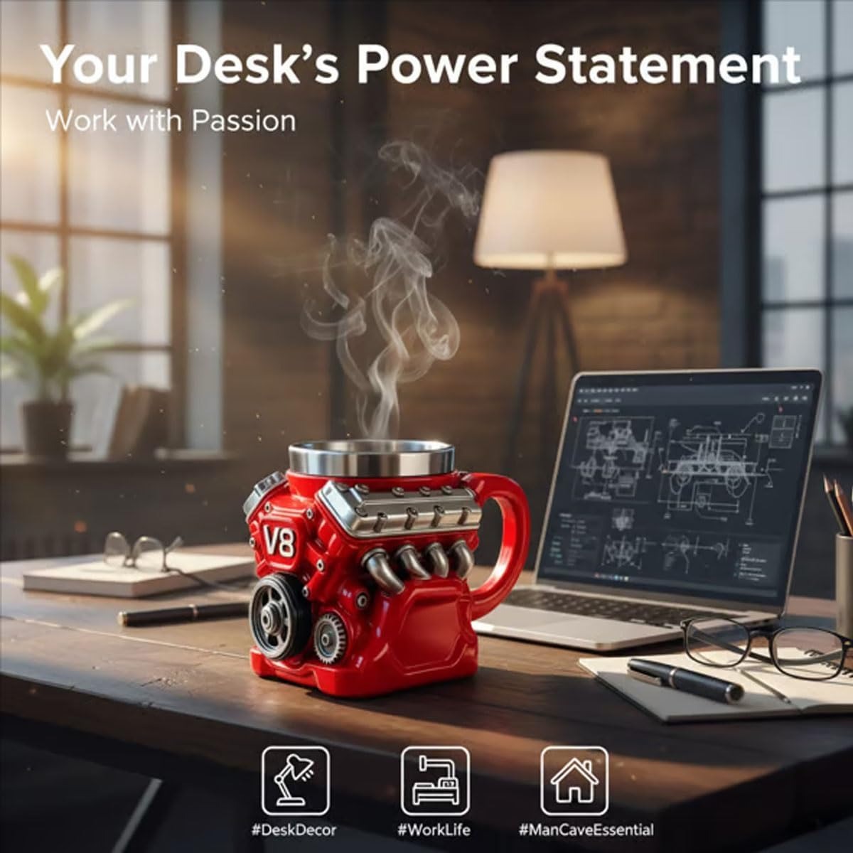 Attractive Look: Crafted with intricate V8 engine motifs, this Retro Engine Coffee Mug boasts a truly creative and eye-catching design that car enthusiasts will appreciate for its realistic charm to power and precision