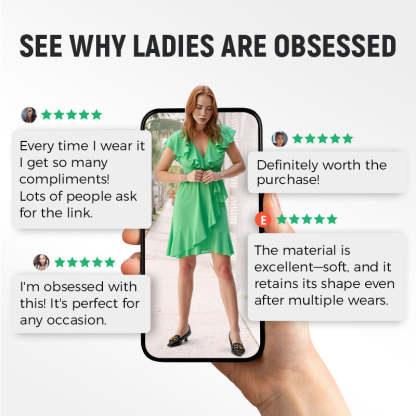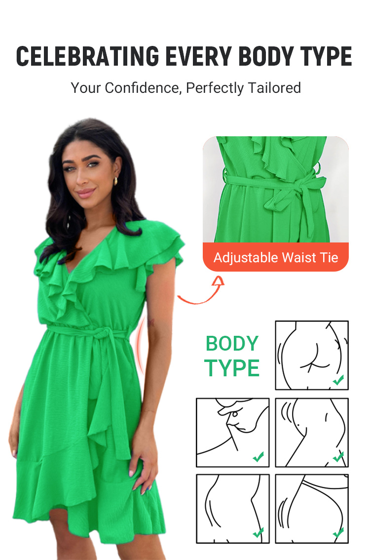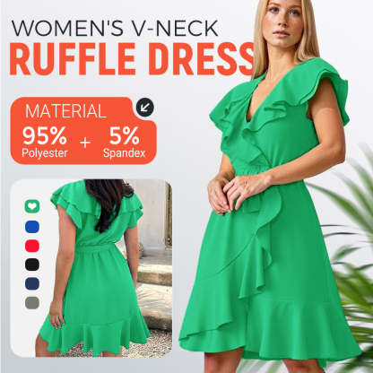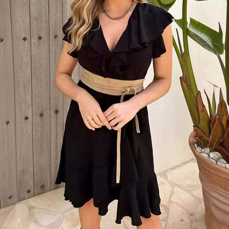 Women's Elegant Waist Tie V-Neck Ruffle Dress