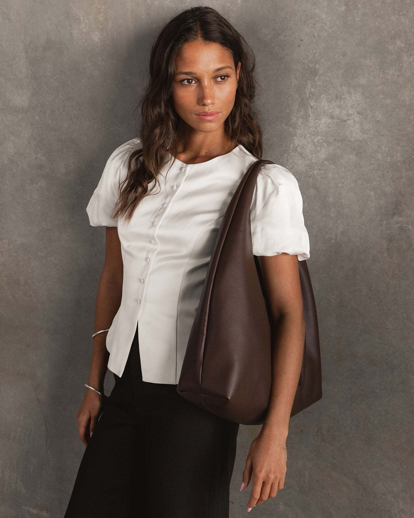 The Monaco Shoulder Bag is an effortless everyday staple designed with modern versatility in mind, she is the it-girl bag of the season. Crafted in a soft slouchy silhouette, the refined teardrop shape sits comfortably over the shoulder, offering a sleek yet relaxed finish to any look. Whether you're heading to the office, meeting friends for lunch, or running errands, Monaco’s minimalistic design seamlessly transitions with you throughout the day. Spacious and considered, her interior offers ample room for your daily essentials, with thoughtful pockets to keep everything in order. Designed for both style and function, the Monaco Chocolate Shoulder Bag is completed with a secure zip and smooth-to-touch vegan leather that adds a contemporary edge to your wardrobe.
