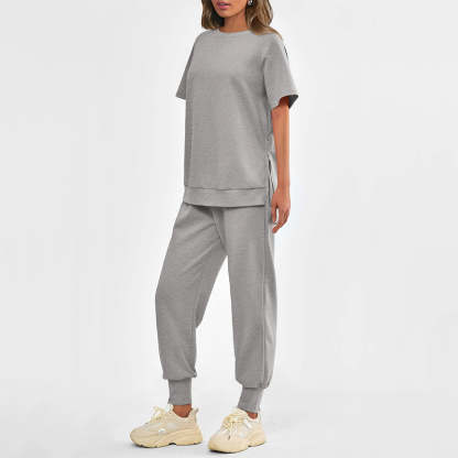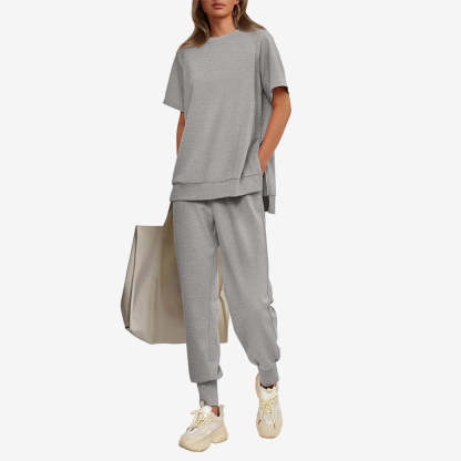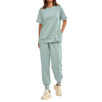 CASUAL ELEGANCE - The simple, yet refined design of this tracksuit set blends casual comfort with a touch of style. The classic T-shirt and pant silhouette create a casual look, making it the perfect choice for a variety of everyday occasions.