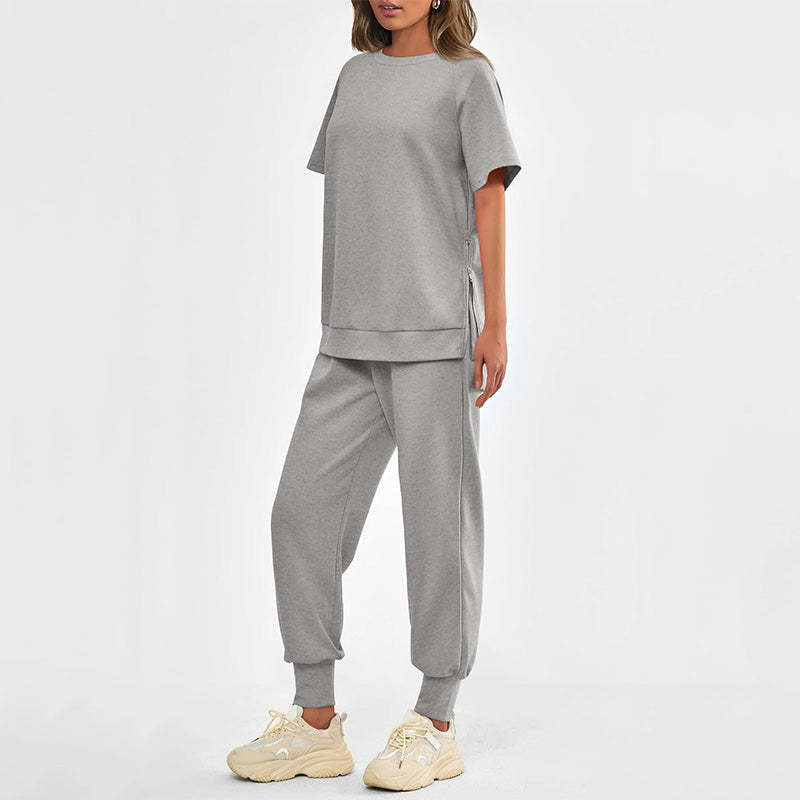 SIDE ZIPPER DECORATION - The T-shirt in this tracksuit set features a decorative side zipper, adding a touch of modern style and visual interest. The zipper enhances the aesthetic appeal of the garment, making it a fashionable choice.