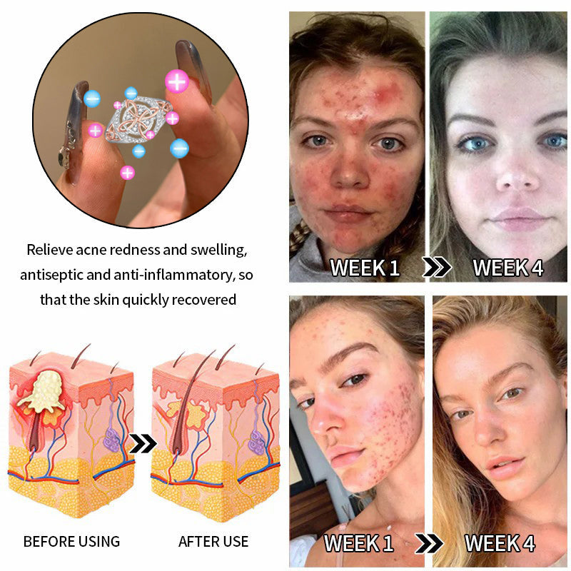 Titanium has anti-inflammatory properties that have a calming and soothing effect. It facilitates the reduction of pain and inflammation, and the negative ions generated by titanium are transported through the body by amplifying the Pr magnetic field, which has an anti-inflammatory and pain-relieving effect. effect. It removes deeper bacteria, prevents bacterial growth, reduces inflammation and effectively relieves redness and swelling of acne.