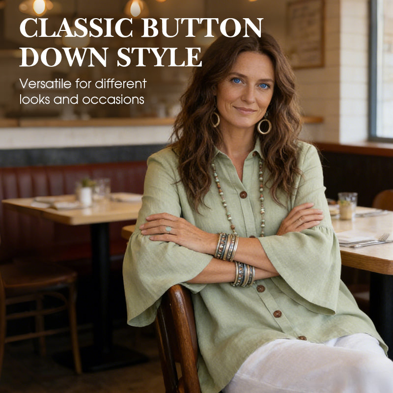 CLASSIC BUTTON-DOWN FRONT - This timeless feature offers styling flexibility. Wear it buttoned up for a polished look or open over a camisole for a more casual, layered effect, adapting to your personal style.
