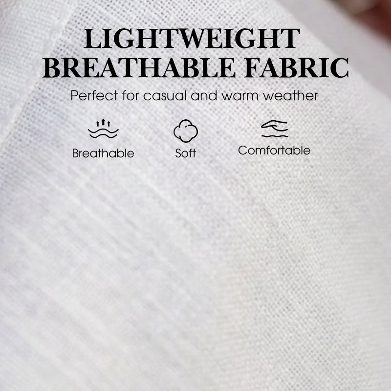 BREATHABLE COTTON-LINEN BLEND - Experience exceptional comfort with this lightweight fabric. Its natural breathability keeps you cool and comfortable, making it an ideal choice for transitioning between seasons or for all-day wear.